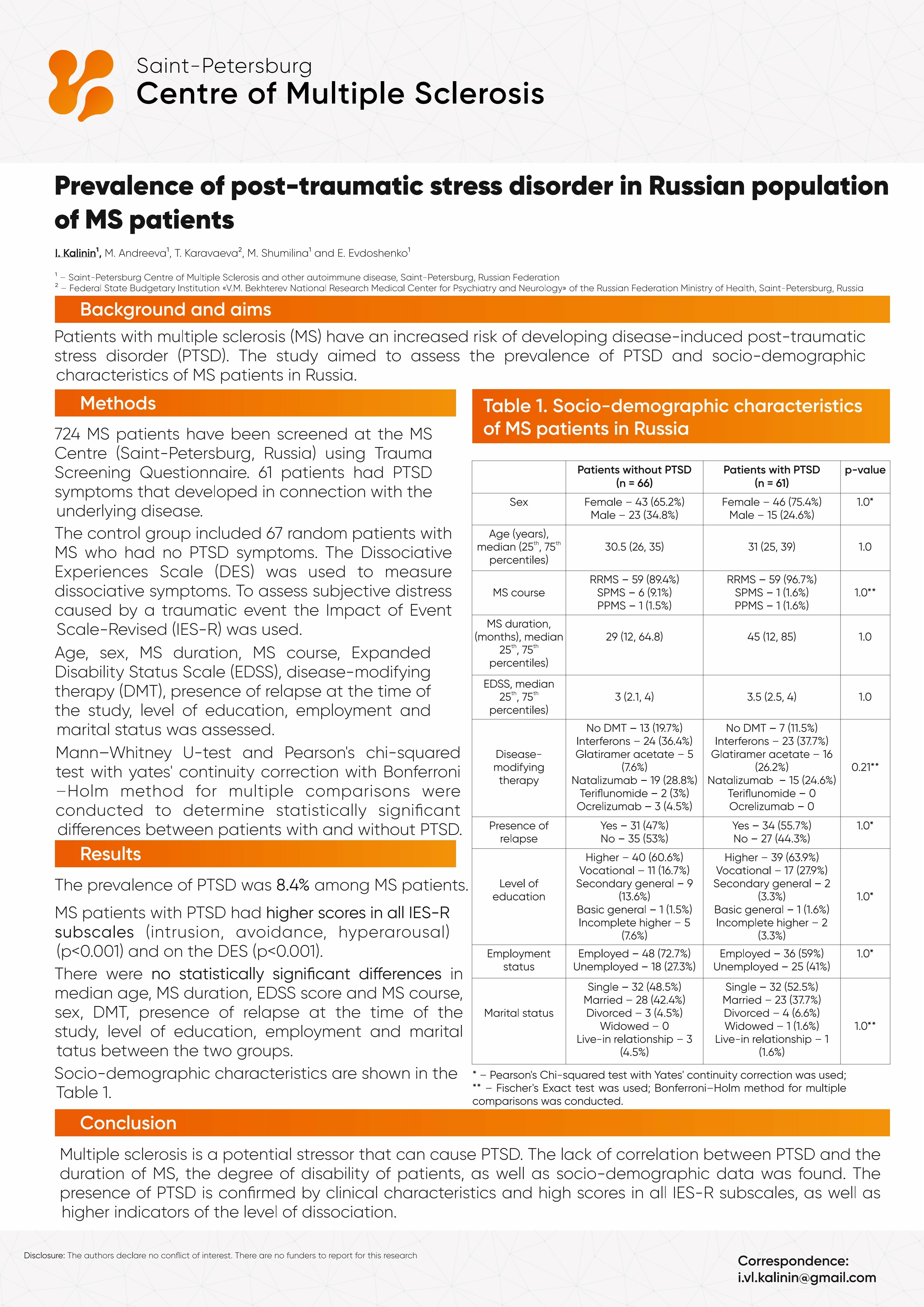 Prevalence of PTSD in Russian population of MS patients