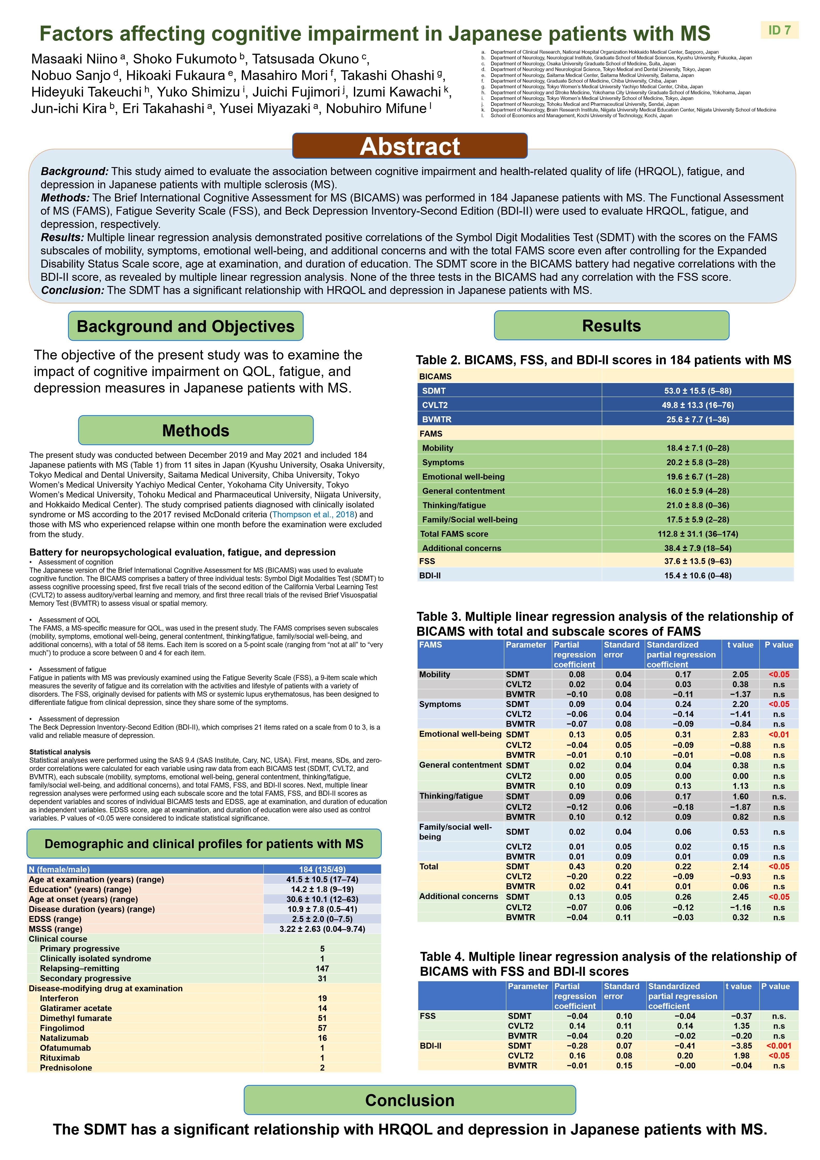 Factors affecting cognitive impairment in Japanese patients with multiple sclerosis